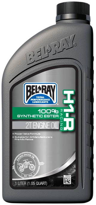 Bel-Ray H1-R Racing este uleiul de motor 100% sintetic pe bază de ester conceput special ca soluție de top pentru motoarele 2T de competiție cu sistem power-valve (supapă de putere/exhaust control).
